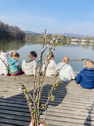 V tem mesecu se nam je na novo pridružil mlajši deček. Dečku smo se predstavili in ga povabili v našo igralnico, v našo igro. Trudili smo se, da mu ustvarimo čim lažji prehod. V tem mesecu smo imeli večkrat gibanje s Katarino. Utrjevali smo rajalni igri: Ringa-raja in Zajček Dideldajček in prstne igre: Gremo pogledat na vrt, kaj delata miška in krt ter Gosenica je lezla. Otroci so se poljubno plesno izražali ob otroški glasbi. Igrali smo se socialno igro: Čigav je copatek?. Štirikrat smo imeli angleščino s Polono. Sami smo utrjevali angleško pesem Teddy bear, katero smo predstavili na druženju z mamicami in babicami, ki je potekalo v popoldanskem času. Plesno pesem smo uporabili, ker je v njej vključen vrt in rožice. Trudili smo se veliko bivati na prostem, kjer smo ostali pozorni tudi na naravo, ki se prebuja. Obiskali smo tudi bližnji gozdiček, kjer smo se igrali z vejicami, zemljo, kamenčki. Začeli smo s sprehodi brez bibe. Izvedli smo pa tudi več daljših sprehodov, do igrišč in okoli Koseškega bajerja. Praznovali smo en rojstni dan dečka. Obiskala nas je tudi sestra Vesna, katera nam je skozi igro in didaktične pripomočke prikazala kako pravilno skrbimo za naše zobke. Bili smo povabljeni v športno igralnico, kjer smo prisluhnili pripovedi ruske pravljice v izvedbi Jelke Zornada, tako smo obeležili dan pripovedništva.